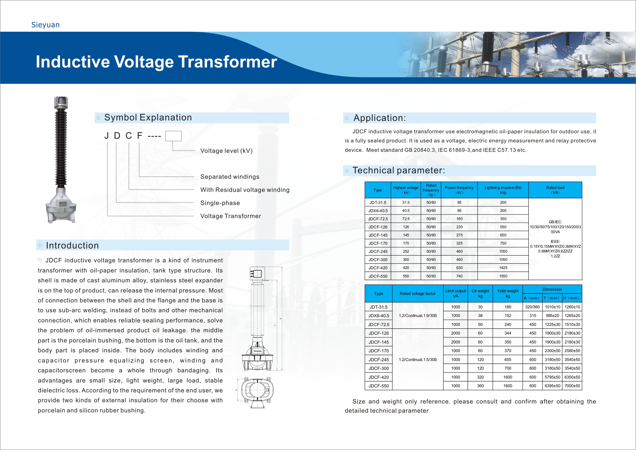 El transformador de voltaje inductivo es aislamiento de aceite-papel, al aire libre con un transformador de voltaje de estructura totalmente sellado, el diseño del producto es fiable, de alta precisión, ligero, puede cumplir con los requisitos de medición de alta precisión de diferentes usuarios. El tanque de aceite y las partes metálicas expuestas están hechas de aluminio metálico, y no hay corrosión en el uso a largo plazo.